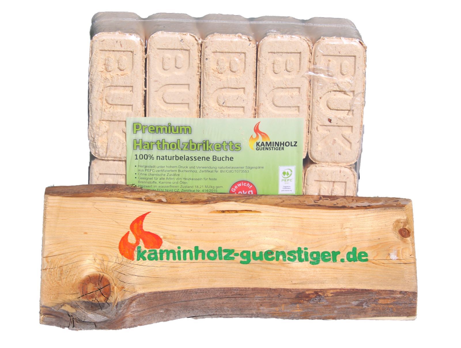 1 Palette PREMIUM Hartholzbriketts RUF Buche mit 99 x 10 kg Folienverpackung (Schrumpffolie), insgesamt 990 kg.