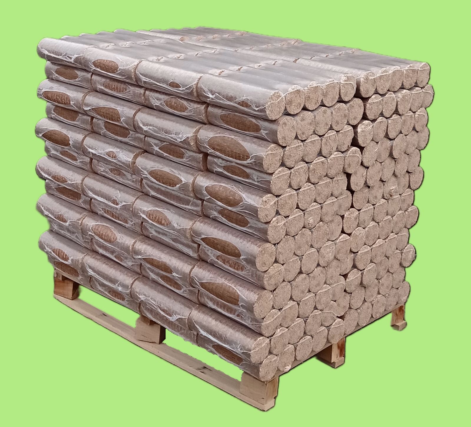 Hartholzbriketts NESTRO/NIELSEN 960 kg aus 100 % hochwertigen Buchenspänen gepresst, ohne Zusatzstoffe, in Schrumpffolie verpackt 96 Pack à 10 kg = 960 kg, Lieferung auf Einwegpalette ohne Pfand.